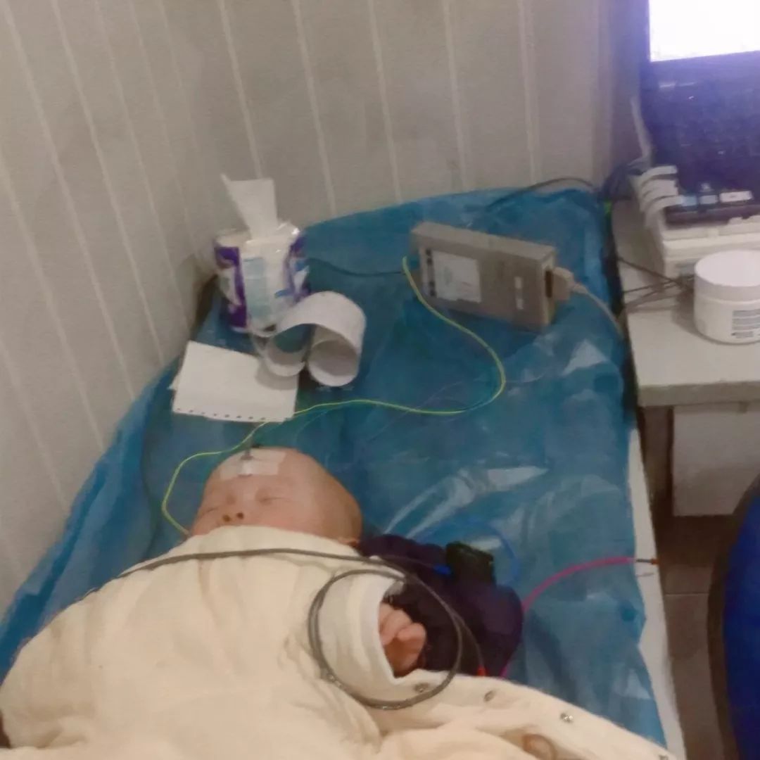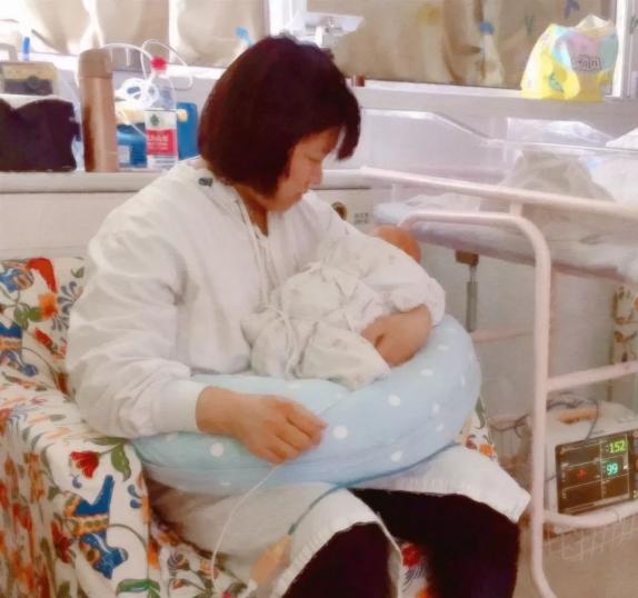 之前戴在妈妈身上的监护仪,现在在宝宝身上了,此时小宝宝还在保温箱。