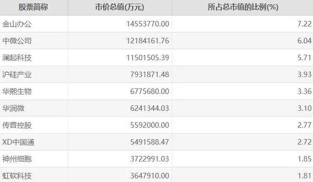 科创板前十大上市公司中芯国际登陆科创板之后,足以镇住场面。