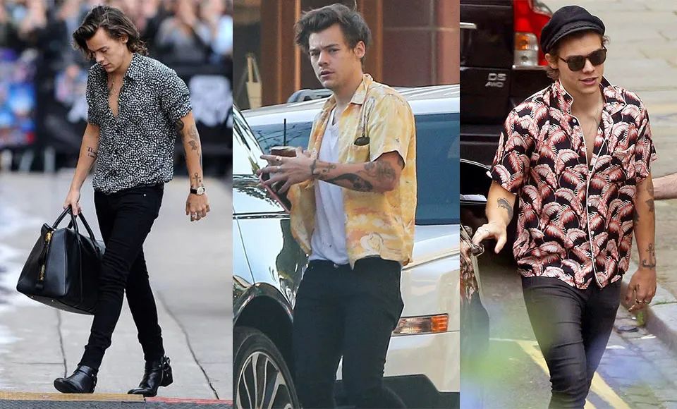 花衬衫是 Harry Styles 的挚爱,他很喜欢挑战解开扣子这种高难度穿法。