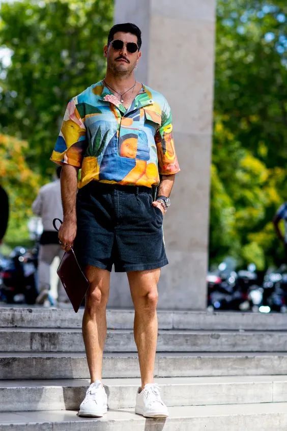 我们在选购花衬衫的时候就可以简单测量是否过长:下摆的长度最好不要盖住臀部,刚过腰线处临近手腕的长度是最合适的。