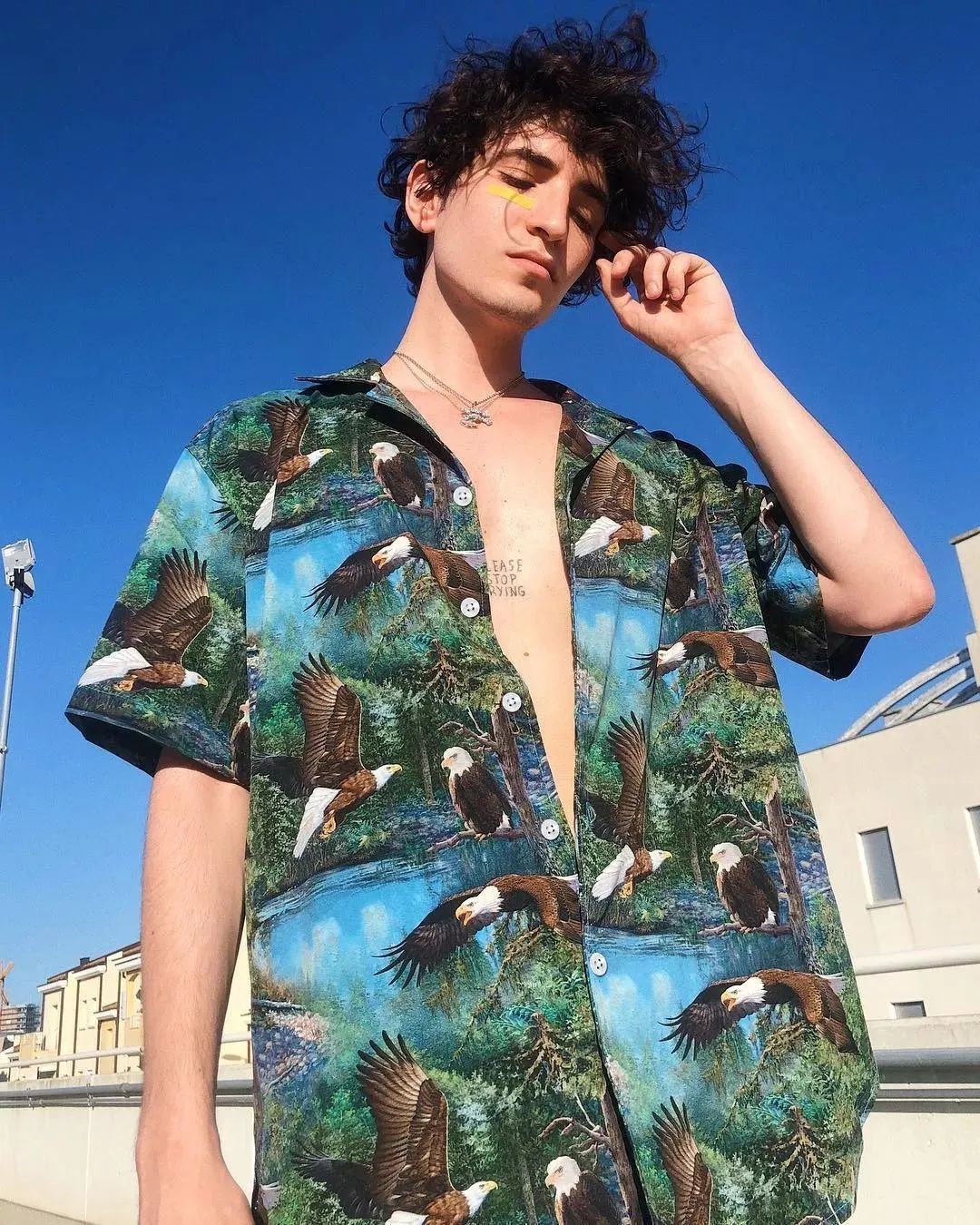 男生穿花衬衫
