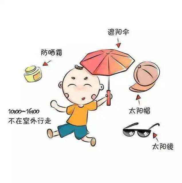 躲高温:尽量避免在中午高温时出门,应选择早晚阴凉时带宝宝出门。