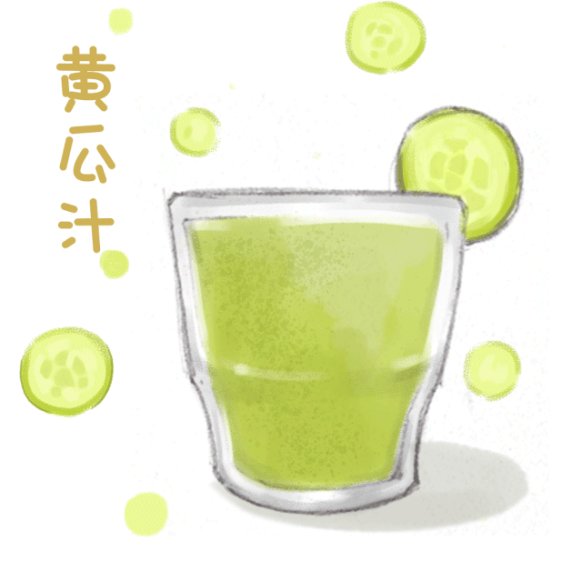 制作方法:将黄瓜瓤500克,去籽,放入榨汁机中打成汁状,加入500毫升凉开水及适量白糖。