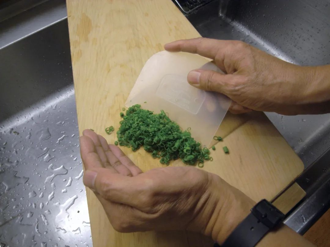 将剁好的鱼肉酱盛到大盘子里摊平,厚度大约6至8毫米。这时候,九十九里的传统做法是,将鱼酱摊成树叶形状,再用刀印出平行四边形的印痕,以方便大家取用。最后,在“树叶”上浇上大量的醋,直到马上漫过鱼肉酱表面为止。好了,终于完成了。