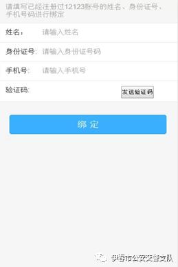如没有绑定直接跳转到绑定页面,输入相关信息进行绑定即可,没有12123用户直接注册。