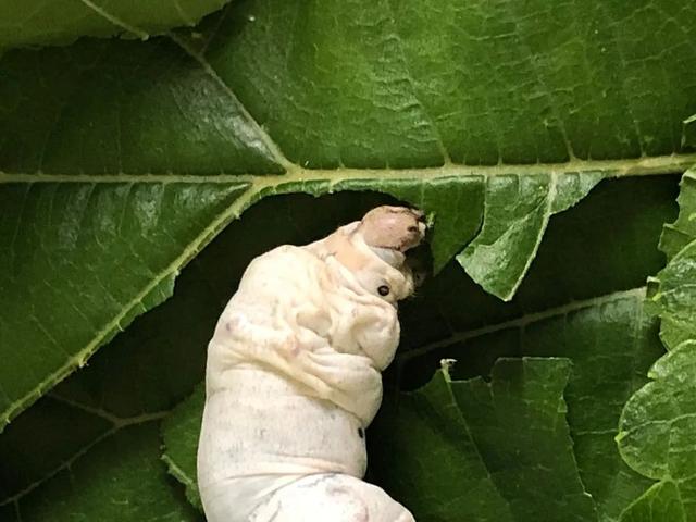那时我不知道,会只剩下最后一条蚕。放大镜下,一百条蚁蚕匍匐在桑叶上,像一百头无知无畏的小兽穿行于森林。发丝般柔细,灰白色的头部,墨绿色的身体,毛茸茸的足。足有八对,三对胸足把持桑叶进食,四对腹足驱使身体前进,一对尾足附着在桑叶上。此时,它们正用力跨出腹足,身体向前推进,头部扭向身后,像一头头回望的小鹿或幼狮。起初,它是桑树的害虫。五千年前某一个清晨,也许午后,一位先人发现了它吐丝的秘密,从此,它被人类驯养,涅槃为丝,前往深邃和广阔,美如浩瀚苍穹。我将一百头小兽连同桑叶的森林倾斜着倒进了另一个世界——一个钻了四排小孔用于透气的塑料盒,用一根很小的鹅毛,将粘在桑叶上的它们轻轻扫到了新鲜的桑叶上。它们仿佛蠕动了几下,又仿佛没有,实在太小了,看不清。它们来自湖州某村某个养蚕人家,被装在一个快递包裹里,穿越2019年暮春的一场雨,来到了杭州春江花月小区的丰巢柜。我捧着包裹穿过雨地,在电梯里遇见邻居家的一条大狗,感觉到它亲昵地逼近,我本能地将包裹紧贴前胸,脑海里奇怪地跳出了几行诗①: 农桑将有事,时节过禁烟。轻风归燕日,小雨浴蚕天。 当它们还是一粒粒蚕种时,它们曾被哪个女人紧贴在胸口孵化?经过了谁的双手喂养?伴随它们而来的,是一整套微型养蚕工具和两个保鲜袋的桑叶,据说放在冰箱里能供它们吃半个月。我用清水将一片桑叶冲了一遍,用纸巾轻轻沾掉叶面上的水,晾了五分钟,又用开水冲洗过的剪刀将桑叶剪碎覆盖在它们身上。十来分钟后,桑叶出现了一个个小小的孔洞,探出了一头头小兽的脑袋。一百头勇猛的小兽,在食物的森林里奔突奋进,狼吞虎咽般啃噬着桑叶,如镰刀收割麦浪,风卷着残云。我仿佛看到,湖州新市镇勇兴村秀才桥沈桂章家,十万头勇猛的小兽,正在桑叶的森林里奔突奋进,发出春雨打在万物之上的沙沙声,整个天地被雨声织进了一只巨大的茧里。这是我第一次养蚕,这一百条蚕于我,不是一百条蚕,而是沈桂章家的十万条蚕。我们相约一起养十万条蚕,但我无法和他们一起日夜亲手喂养十万条蚕,便在家喂养一百条蚕,假装和他们一起喂养了十万条蚕。之间相隔六十公里。我将盒子放置在书房的书桌上,将两朵从湖州含山蚕花会上带回的蚕花放在盒子旁,祈祷一百条蚕平安。笨拙如我,未必能养活一百条蚕,但沈桂章家的十万条蚕一定会平安,一定要平安。