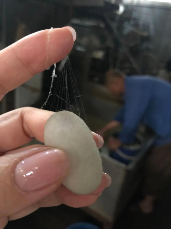 一束丝的来处,有蒸汽弥漫,有一双双因常年泡在热水里缫丝而异常白嫩的手,极易受伤,一根丝线都可能将它割开一道血口。蚕茧化蛹后,就要不分昼夜地缫丝,否则蚕蛹破茧,蚕丝就断了。手工缫丝更繁复,要搭丝灶、烧水、煮茧、捞丝头、缠丝窠、炭火烘丝,一天只能睡两三个小时。