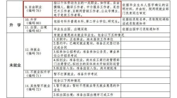 如果是自由职业,例如以个体劳动为主的一些职业,比如自由撰稿人、公众号博主、电子竞技工作者等等,需要依据毕业生本人签字确认的证明材料,并由院校两级就业部门负责同志审定。