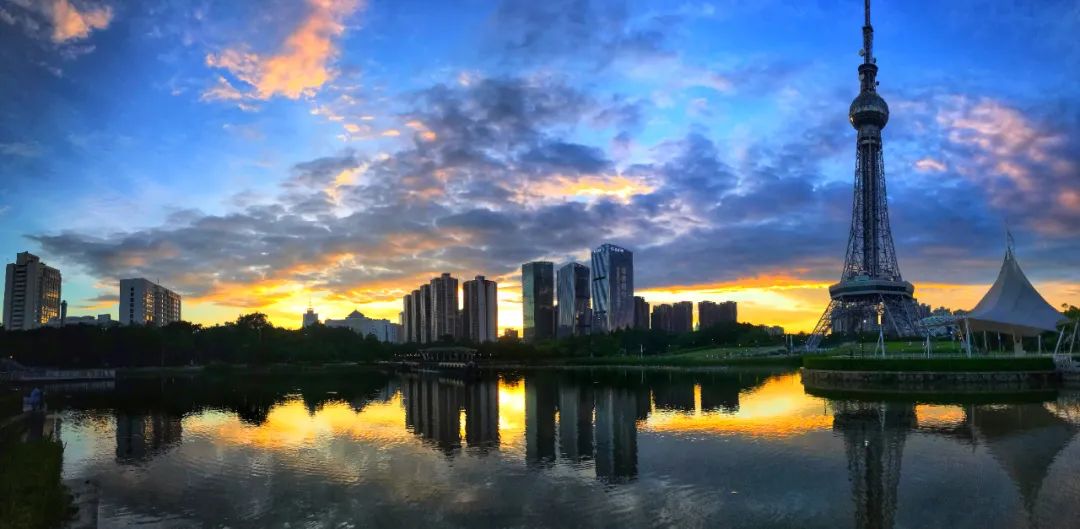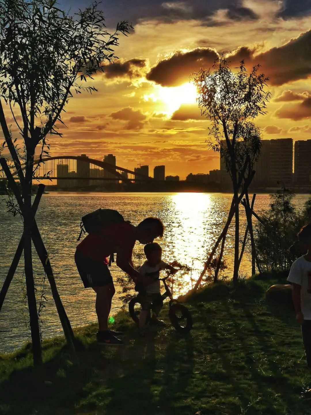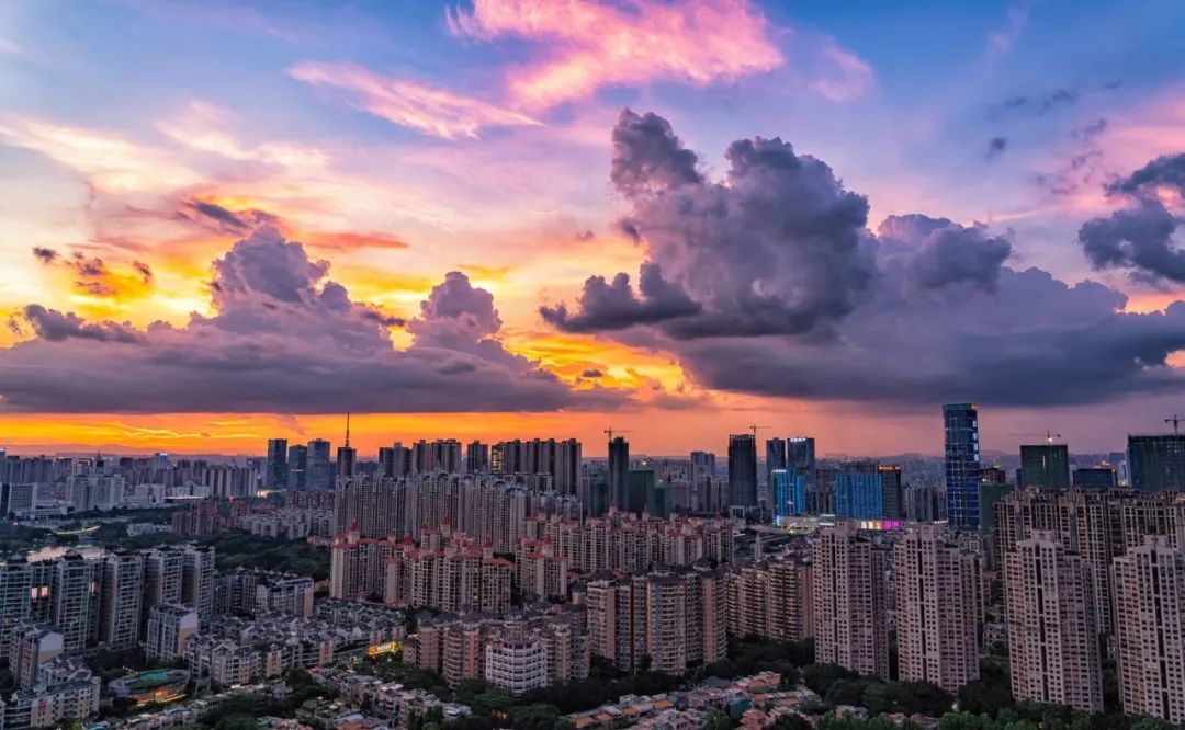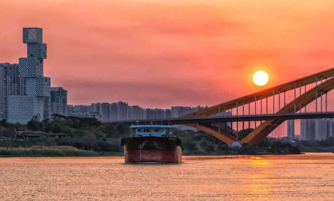 酷热渐渐褪去,太阳要下山了,临走前,揉碎金光洒向禅城。疲惫了一天的人们,抬头便是一抹橙红。