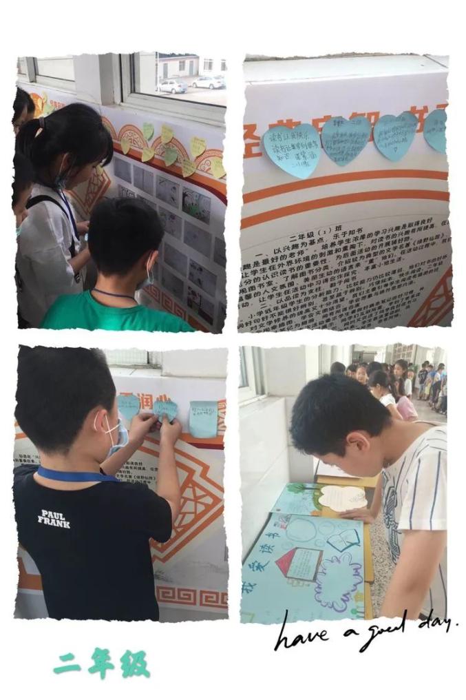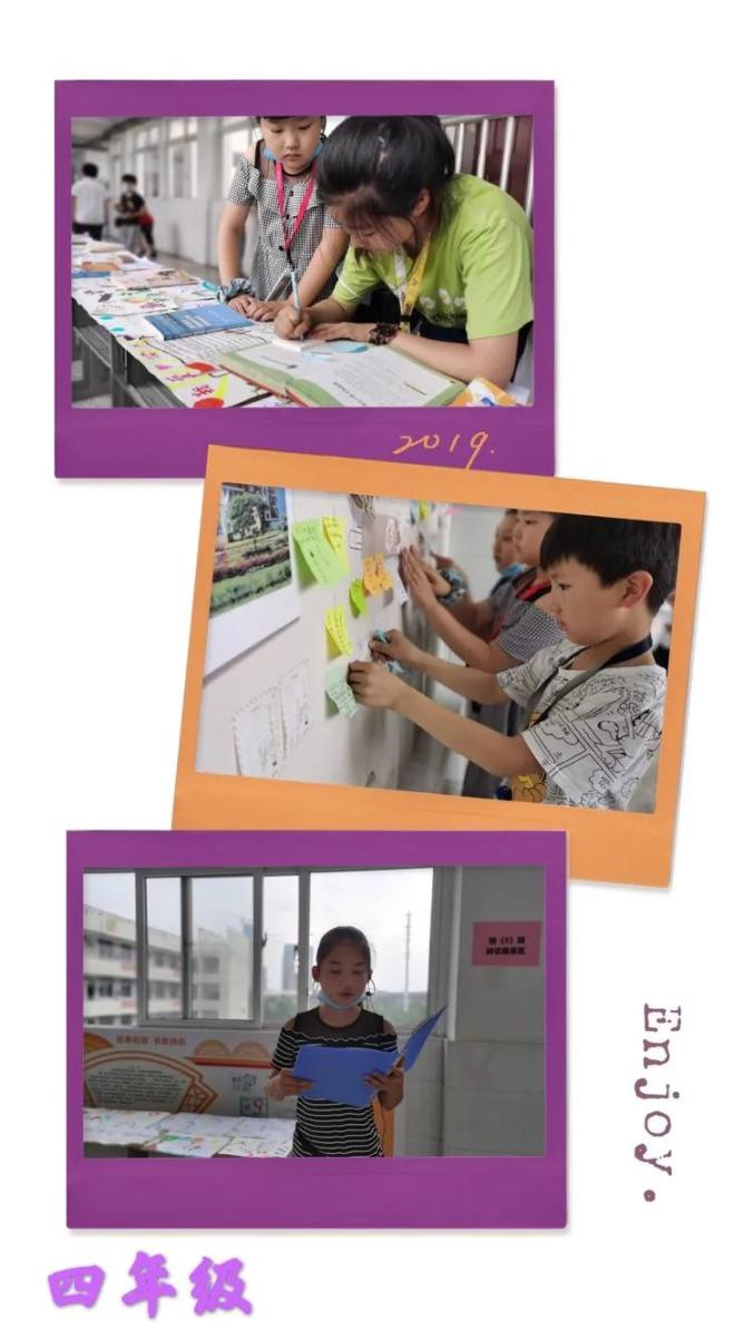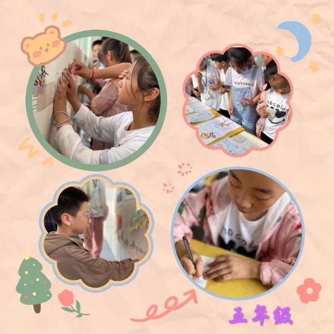 四年级提出了“阅读交流‘五步曲’”。在语文老师的带领下,每读完一本书都要举行阅读交流“五步曲”展示活动。让喜爱朗读、书写、绘画、讲故事、提问的学生从“美文片段我美读”“优美句段我摘抄”“阅读所得我来画”“精彩故事我来讲”“阅读互动我来问”交流形式中各取所好、大展拳脚,在绘声绘色的朗读中、在规范俊秀的书写中、在五彩缤纷的图画中、在妙趣横生的故事中、在紧张刺激的互动提问中,共度阅读多彩时光。