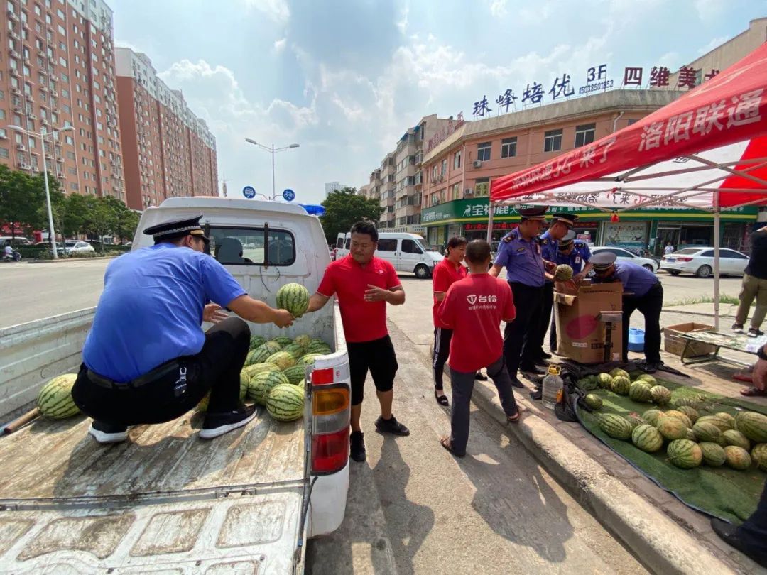 把手扶拖拉机存放在中转点后,剩下的活儿不用尹黑娃操心。几名城管执法人员帮忙装卸西瓜,又支起一个帐篷,拿了两张行军床,把瓜摊收拾得利利索索。看着他们一个个脸晒得通红、汗流浃背,老两口心里一阵阵感动。