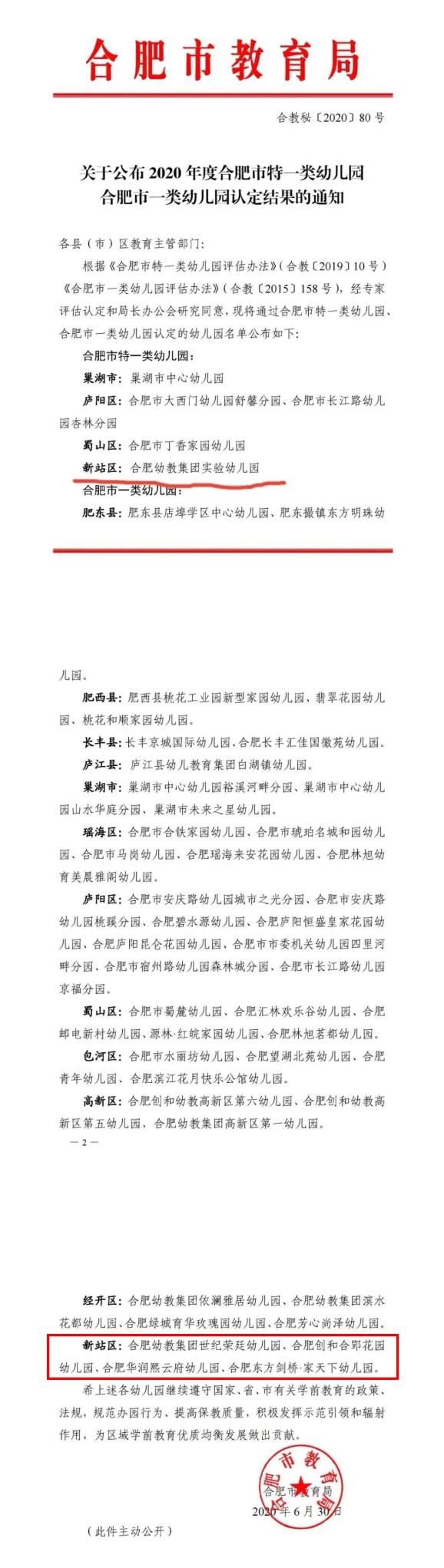 日前,合肥市教育局发布《关于公布2020年度合肥市特一类幼儿园、合肥市一类幼儿园认定结果的通知》,公布获评幼儿园名单。今秋开学,新站高新区优质学前教育资源再增加,新添1所合肥市特一类、4所合肥市一类幼儿园。