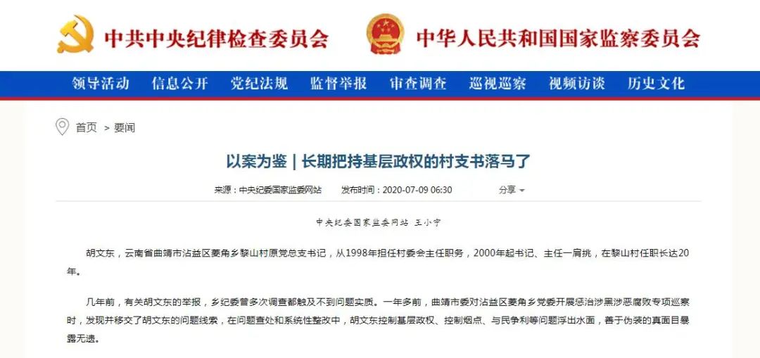 中纪委通报!曲靖一村支书权霸一方20年,与多名女性关系不正当…