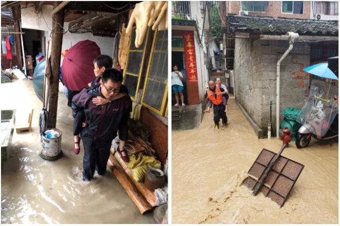 面对暴雨来袭,景宁各级党员干部群众第一时间紧急行动,快速组织应急队伍,不惧暴雨险情,冲锋在前,奋力抗洪抢险。