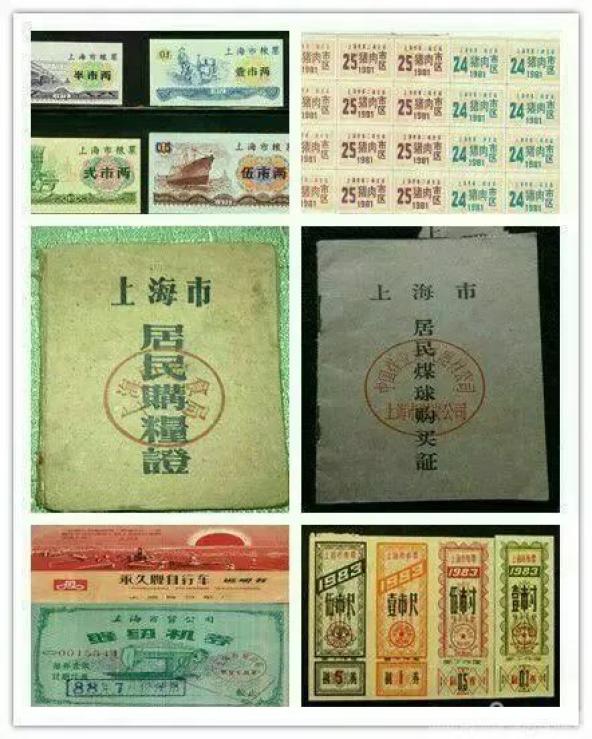 那时物质匮乏,吃、穿商品都要凭票配结供应。那时有购粮证,煤球卡,有粮票、布票、油票、肉票、香烟票、鸡蛋票,还有脚踏车缝纫机购买券等。