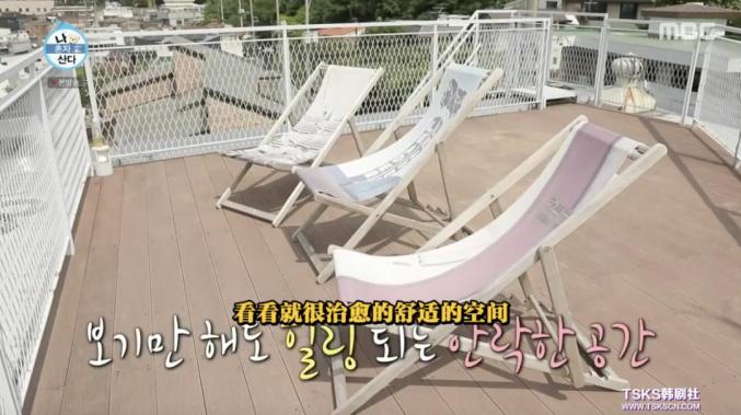 露台上放了三把躺椅,可以眺望半个首尔的风景,是刘亚仁发呆打瞌睡的地方。