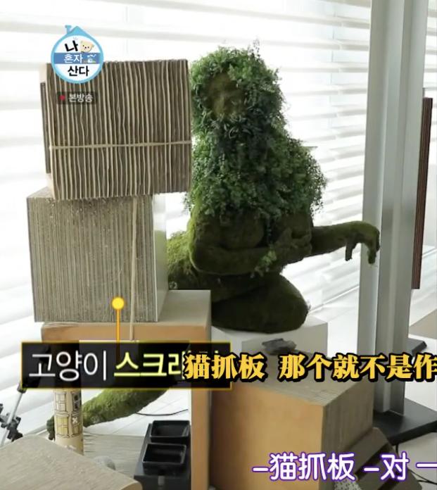 比如客厅的这个角落,以为是什么抽象的造景,但一问才知道,原来只是给家里的猫主子玩耍的猫抓板而已。