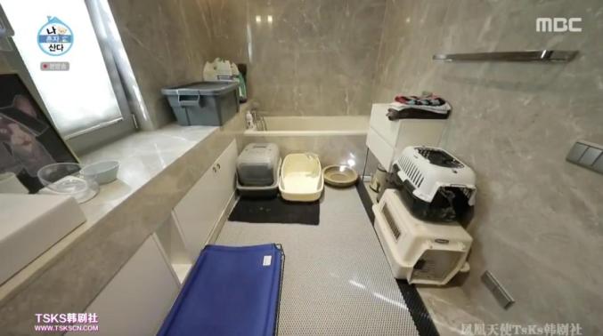 而三楼的卫生间如此精致,二楼的卫生间却成了猫厕所,放的都是两只猫的用品。