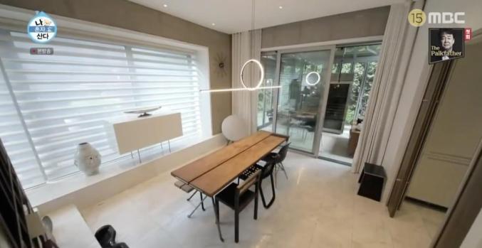 这栋房子是一套三层别墅,自带地下车库和屋顶平台,位于首尔梨泰院,是有名的豪宅区。