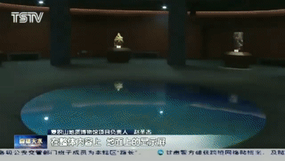 这样的一个组合在国内来说,在室内博物馆展示里是第一家,是具有开创性的。地面的显示屏和空中水晶簇的内容是联动的,给人一种身临其境、震撼的感觉。