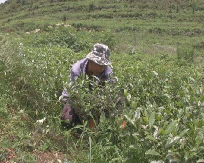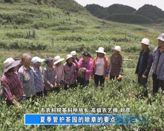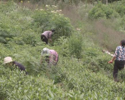 我给大家讲一下,夏季管护茶园的除草的要点,首先我们要掌握除草的季节,我们不能等这些草草开了花结了果,我们才除草。第二我们必须把根除开,浅根除草,你不挖出来它还会再长。第三就是我们除的草可以(覆盖)到茶叶底下去,把它变成肥料。这个茶园经过我们这种管护以后,可以提高我们夏秋茶的产量。