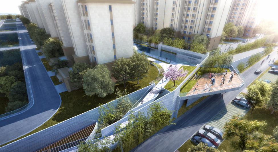 该项目利用0米、10米、16米的高差形成三维立体公园,既能实现对车辆段的有效“遮挡”,又营造自然生态且与周边环境融为一体的公共空间。