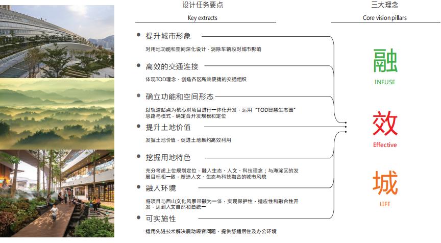 据海淀区商务局相关负责人介绍,由于临近西山,车辆段上盖也将融入西山风景之中,结合地铁车辆段上盖的高差优势,以全新理念及TOD智慧生态圈商业模式,带给我们一个西山下的商业综合体。作为海淀北部地区主导产业带的最西侧的端点,未来将对整个海淀山后地区带来重要的辐射作用。