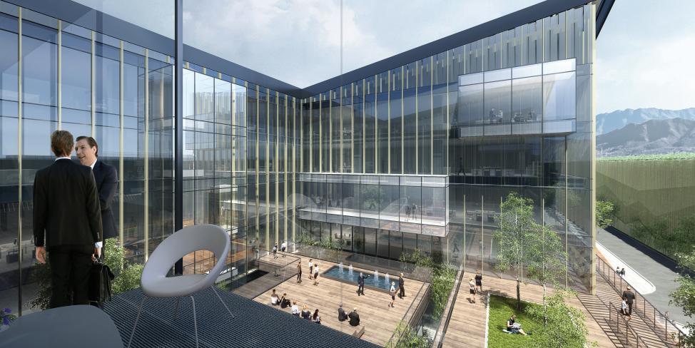 项目外观仿佛西山山脉的延伸,建筑形态连绵起伏,与西山融为一体。地形利用层叠式景观隐藏侧壁,绿化系统完善,形成对车辆段的遮盖,车辆段便捷景观化处理,形成开放空间优美的地景建筑。