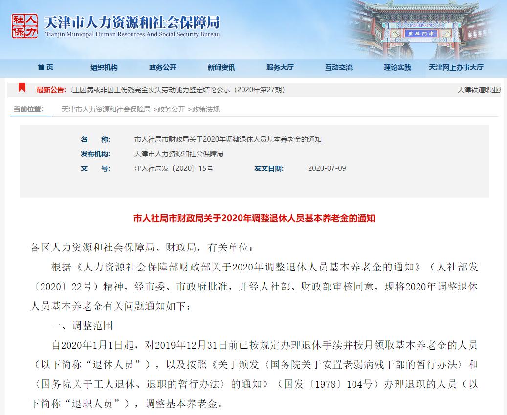 天津养老金,涨了