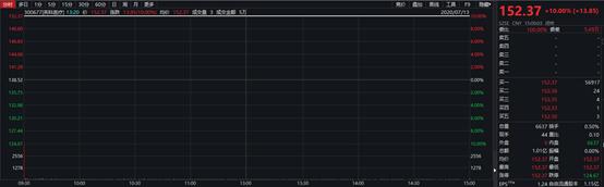 另一边,英科转债的正股英科医疗7月13日一字涨停,报收152.37元/股,总市值达336亿元。