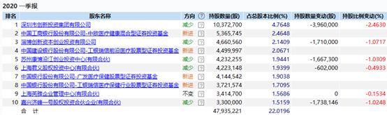 截至今年一季度末,英科医疗的前十大股东都是投资机构。