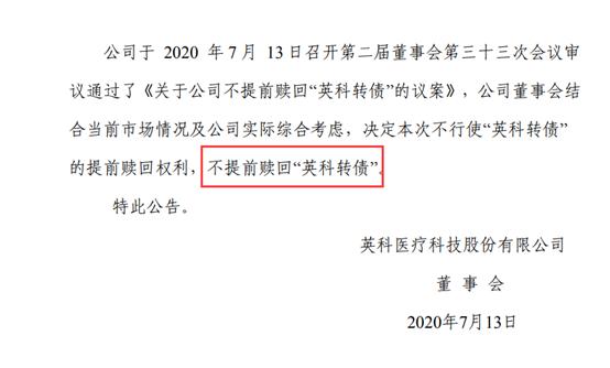 不过,稍微值得欣慰的是,英科医疗晚间发布公告称,暂不行使“英科转债”的提前赎回权利,不提前赎回“英科转债”。