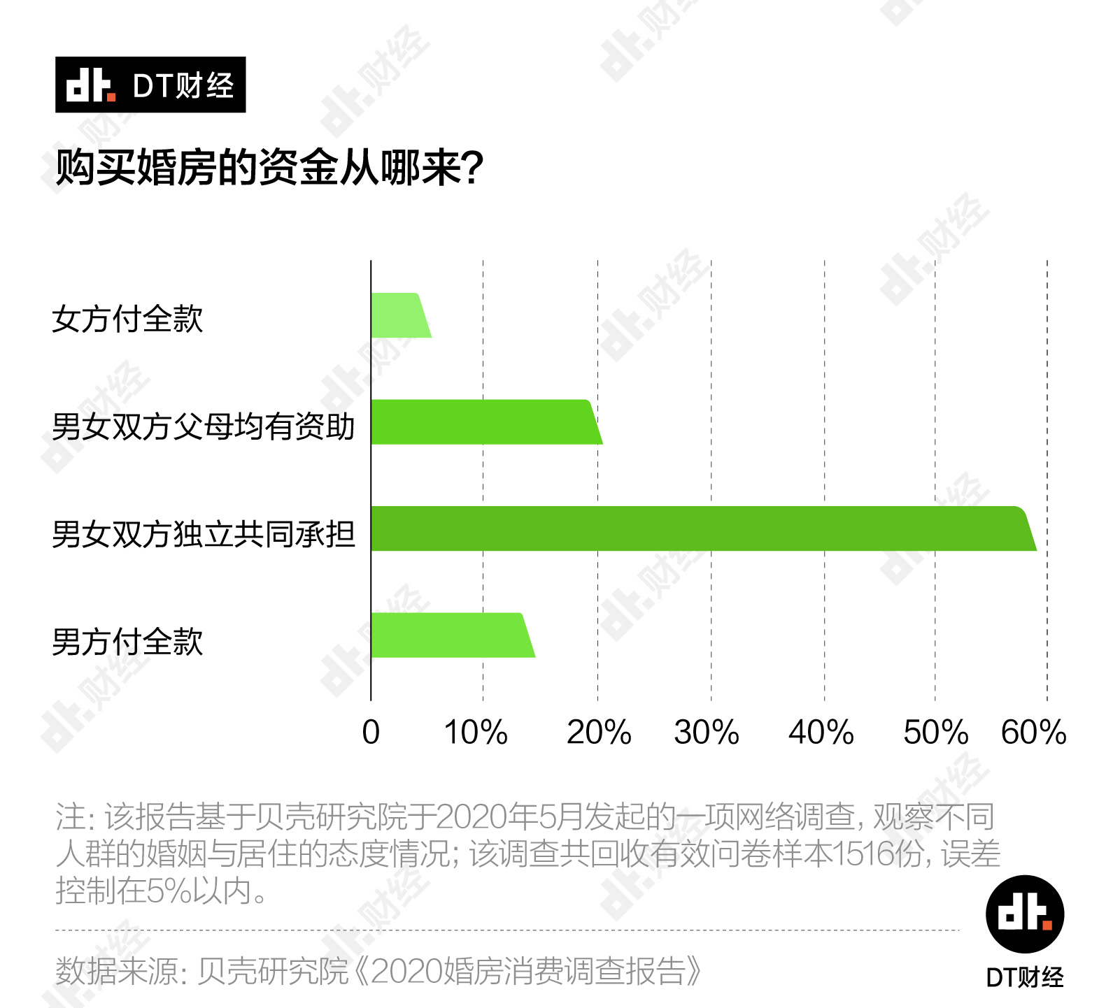 剩下的1/4,就是男方或者女方家庭独立出资,全款买房。但在这部分人群中,男方独资买房的比例要远高于女方独资。婚房带来的压力,更多地施加在了男性一方。