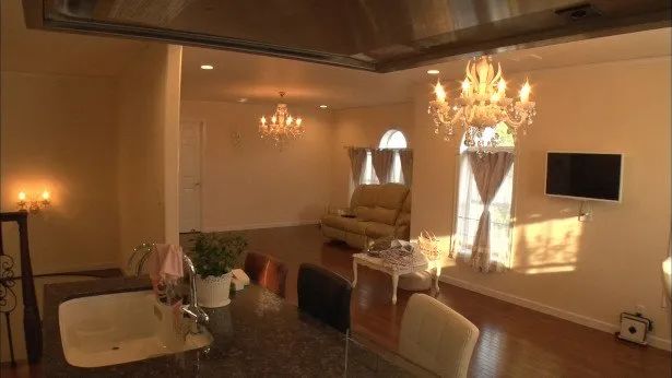 室内吊灯也是日剧里的那种豪门风格必备的水晶吊灯,价格在20万日元(约人民币13200元),另外还有50万的大理石桌子(约合人民币33000元),专门的衣橱空间里还有400套名牌衣服和100多双价格不菲的名牌鞋子。