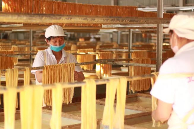 北门达和源、三街福利豆腐厂等企业的厂房里,传统豆腐工艺与现代化生产设备相融合,戴着口罩的工人正井然有序忙碌着煮浆、滤浆、揭皮、晾晒、压制、切丝、包装,一批批鲜豆腐和腐皮腐竹等中高端豆制品通过盒马鲜生、沃尔玛等大型商业超市市场和电商平台销往各地。融入园区化生产销售的企业,不再是小、散、弱的状态,生产方式、工艺流程、销售渠道已发生根本性转变。