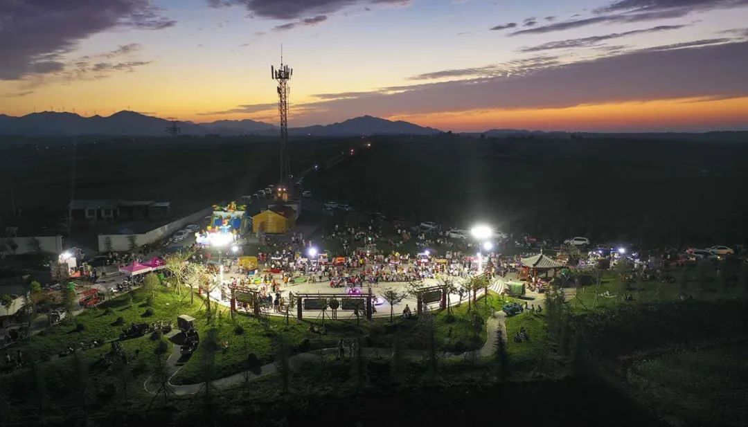 放眼望去,这片热闹之地除了赵大爷家的娱乐设施,还有各式各样的地摊、烧烤摊、小吃摊、小舞台,大家忙碌地准备着、快乐地交流着,似要迎接一场胜仗般胸有成竹、满心喜悦。