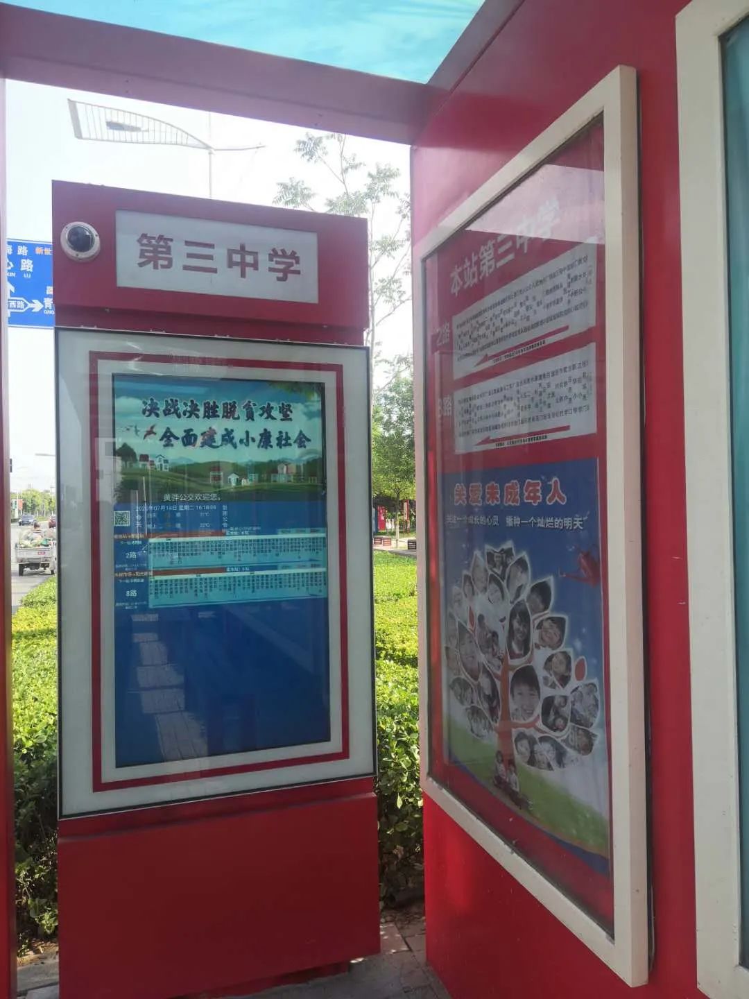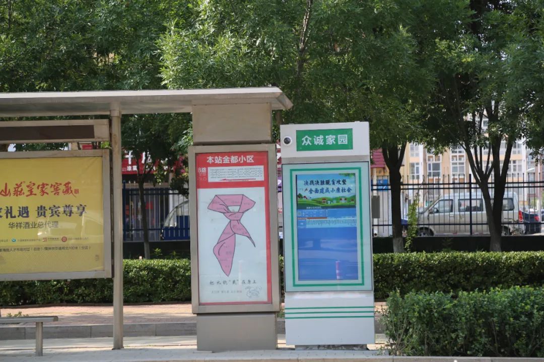 智能电子站牌具有公交车辆实时位置显示、即时信息发布和语音播报等功能。电子站牌的后台与公交公司智能调度系统相连,使车辆行驶情况能同步显示到电子站牌上,包括途经本站的所有线路,本条线路本站台行驶方向的所有车辆所在位置等。此外,电子站牌还显示“日期”“时间”“天气”等信息;站牌前端的摄像头能够对站台情况进行实时监控;液晶显示屏滚动播放公益广告,为文明城市创建营造了良好氛围。