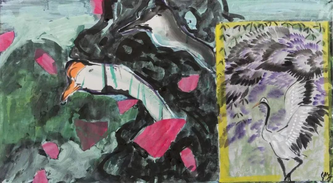 如何将梁缨的画归类,则成为一个难题。带着深厚的中国传统家学德国求学、生活,她完成了再现到表现的转换,脱离了笔墨限制,既非“颠覆传统”,也非“自立山头”,在引西润中这条路上,她逐渐形成了有自己语言体系的艺术家梁缨。