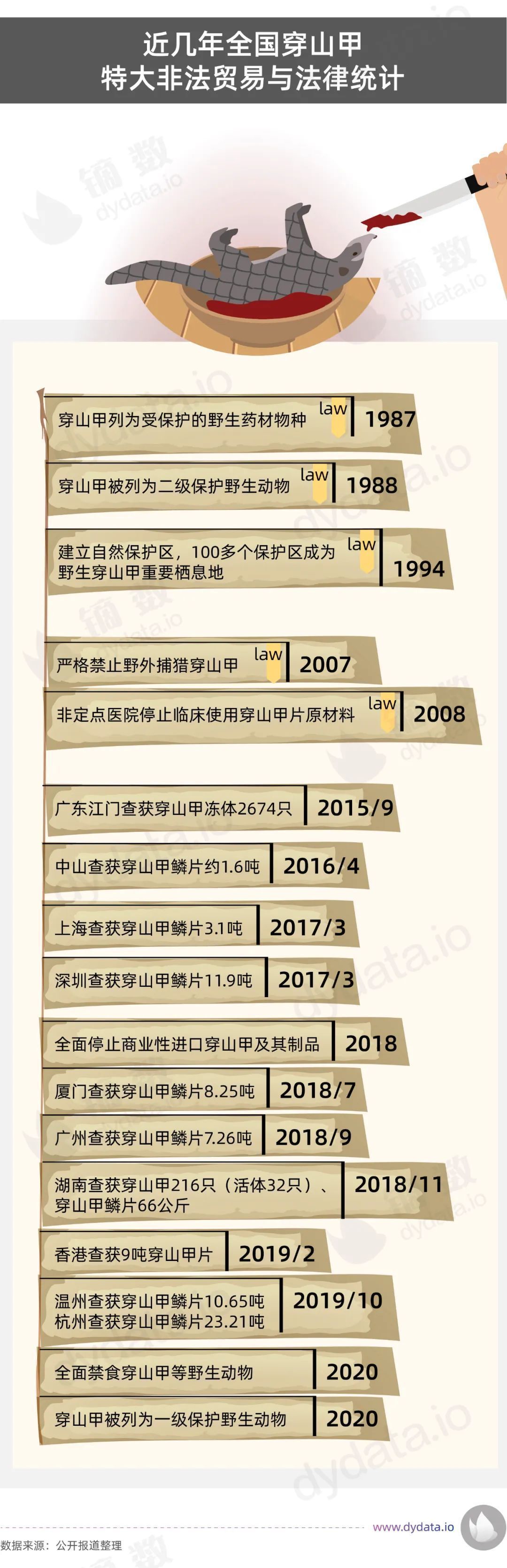 我国从1987年,将穿山甲列为受保护的野生药材物种开始,多次制定修改新的法律政策,不断加大对破坏穿山甲等野生动物资源犯罪的打击力度。