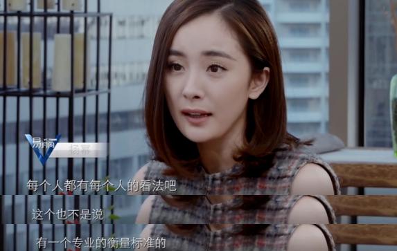 而当易姐问杨幂,会不会觉得现在对她演技的评判不公正时,杨幂表示:每个人有每个人的看法,演技和实力也不是说有专门的衡量标准的。