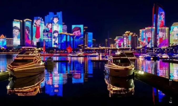 看点: 夜游浮山湾 上合灯光秀 五四广场 奥帆中心