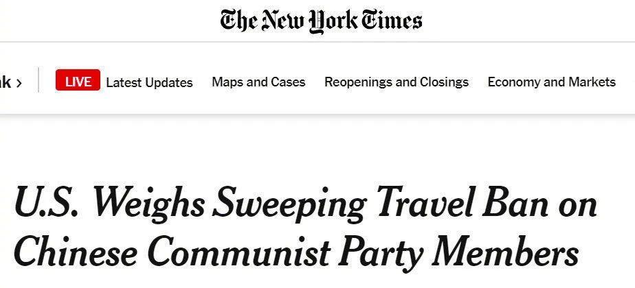 《纽约时报》16日援引知情人士的话称,特朗普政府正在考虑全面禁止中共党员及其家人前往美国。