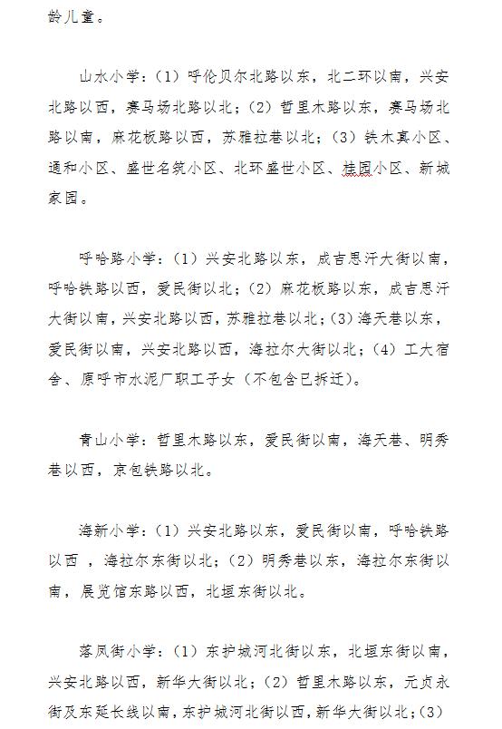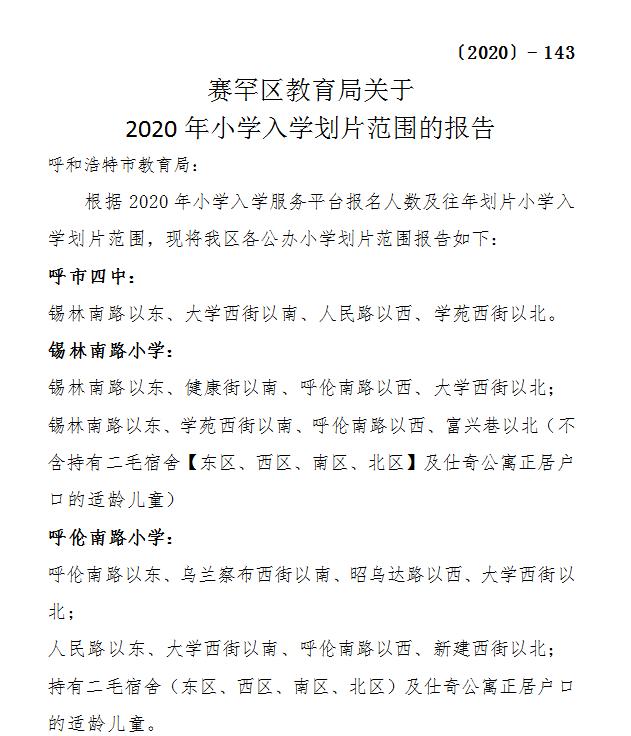 赛罕区教育局关于2020年小学入学划片范围的报告