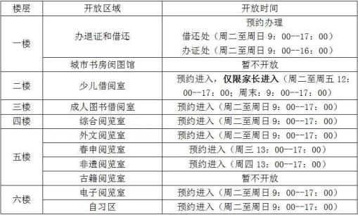 目前,区图书馆开放区域与开放时间