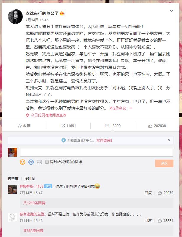 看了看,喷点基本都是“没有空窗期就是不诚恳”,还有人说“拍这种照片的有几个是好女孩?”