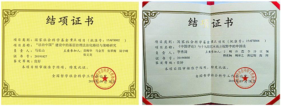 在研与结项:在研国家社科重大项目3项;国家社科基金重点项目结项2项,一般项目结项1项,青年项目结项1项。