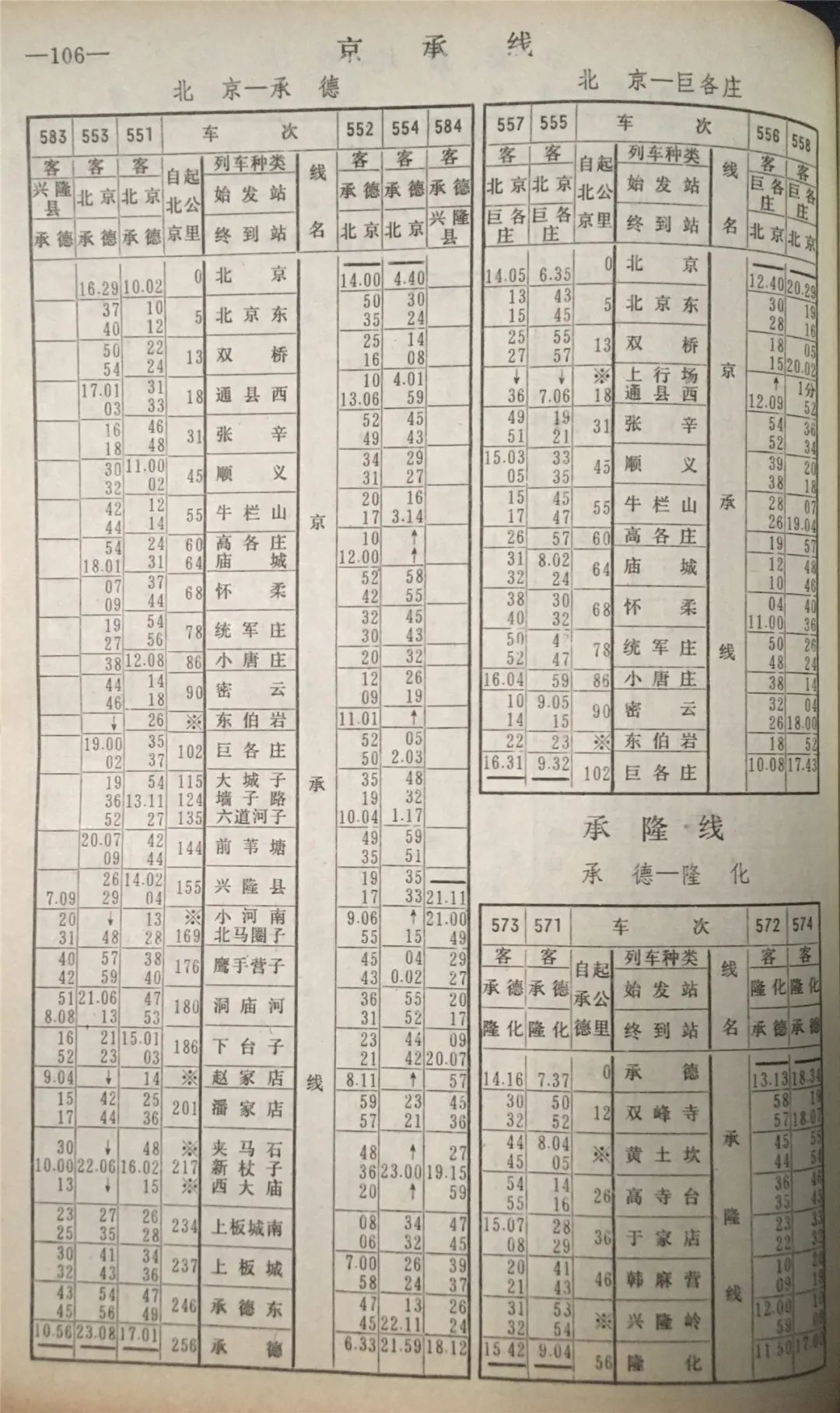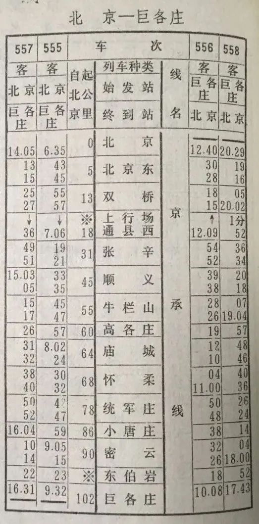 几十年间,密云就只有这两条铁路。从90年代初的列车时刻表可以看出,开行的车次虽然不多,但在当时已经算是相当方便,票价实惠,为密云百姓出行和工业生产贡献了很多。有旅客列车停靠的车站有密云站(今密云北站)、统军庄、小唐庄、巨各庄、大城子、墙子路、黑山寺、石塘路、燕落、兵马营、下河、古北口等。