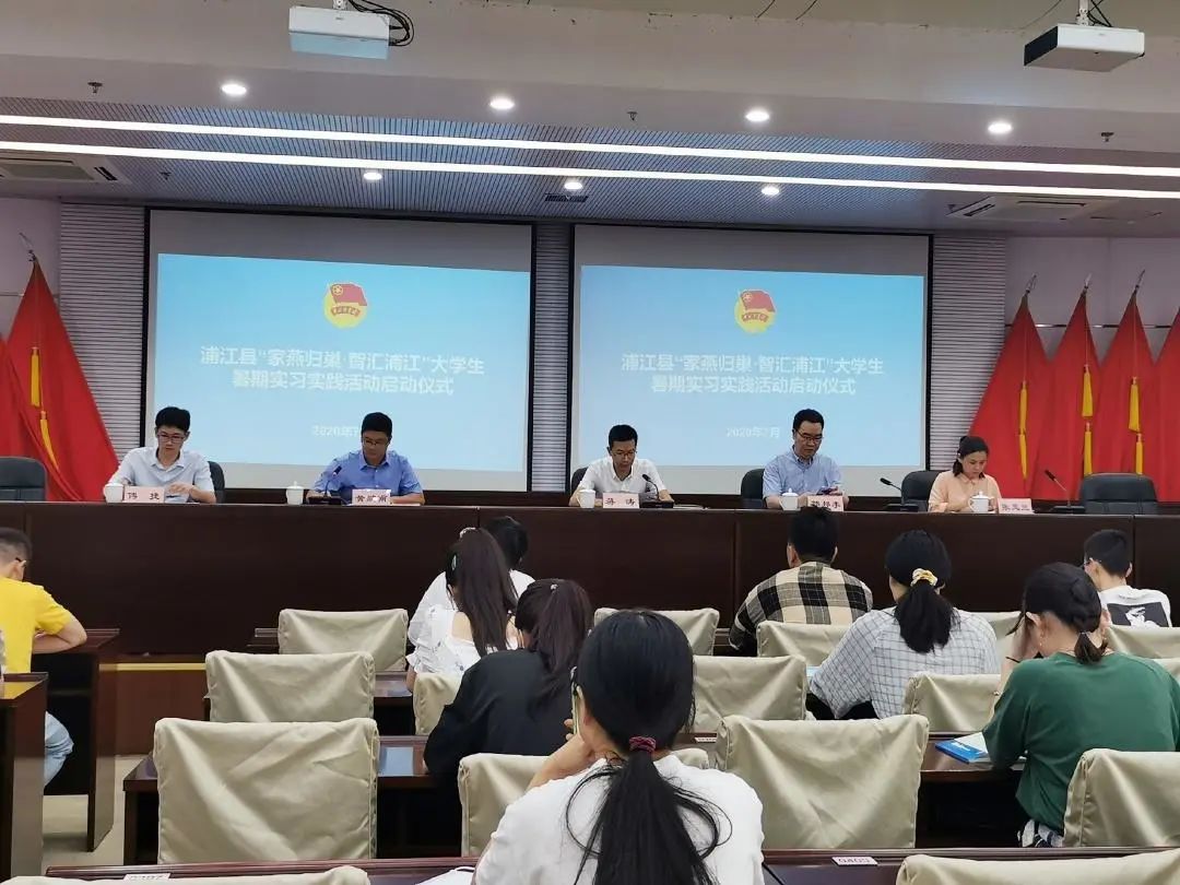 7月16日下午,由县委人才办、县人社局、团县委联合开展的“家燕归巢·智汇浦江”大学生暑期实习实践活动正式启动。