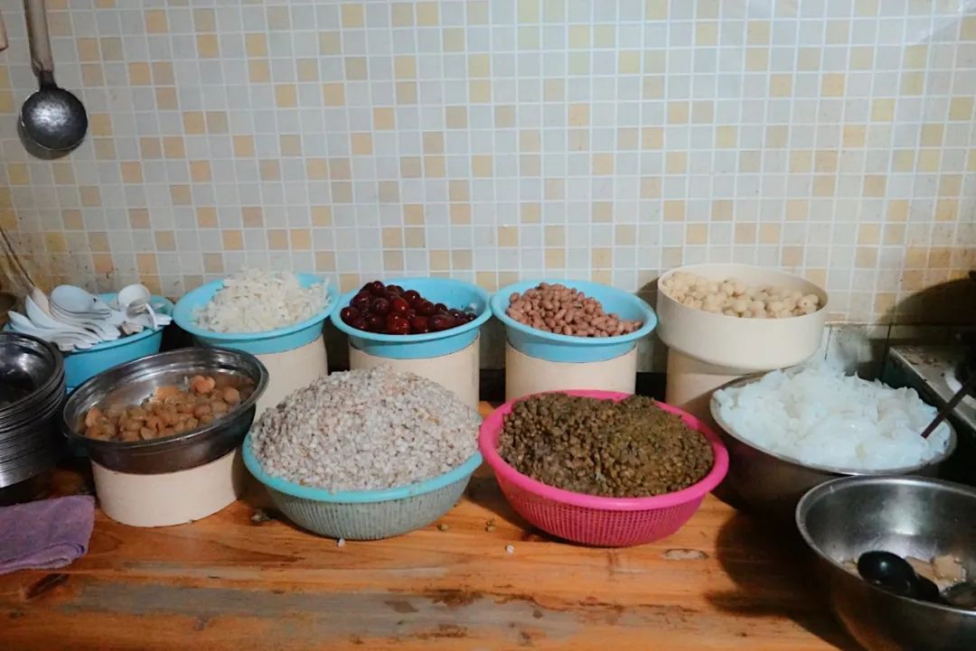 先嘬一口清甜的红糖水,再盛一勺配料,嘴里塞得满满当当。