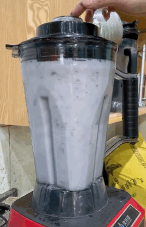 只见老板老林从冰箱里取出若干块老椰肉放到搅拌机中,没水浸泡冲洗,再倒入足量的清水,开始搅打。